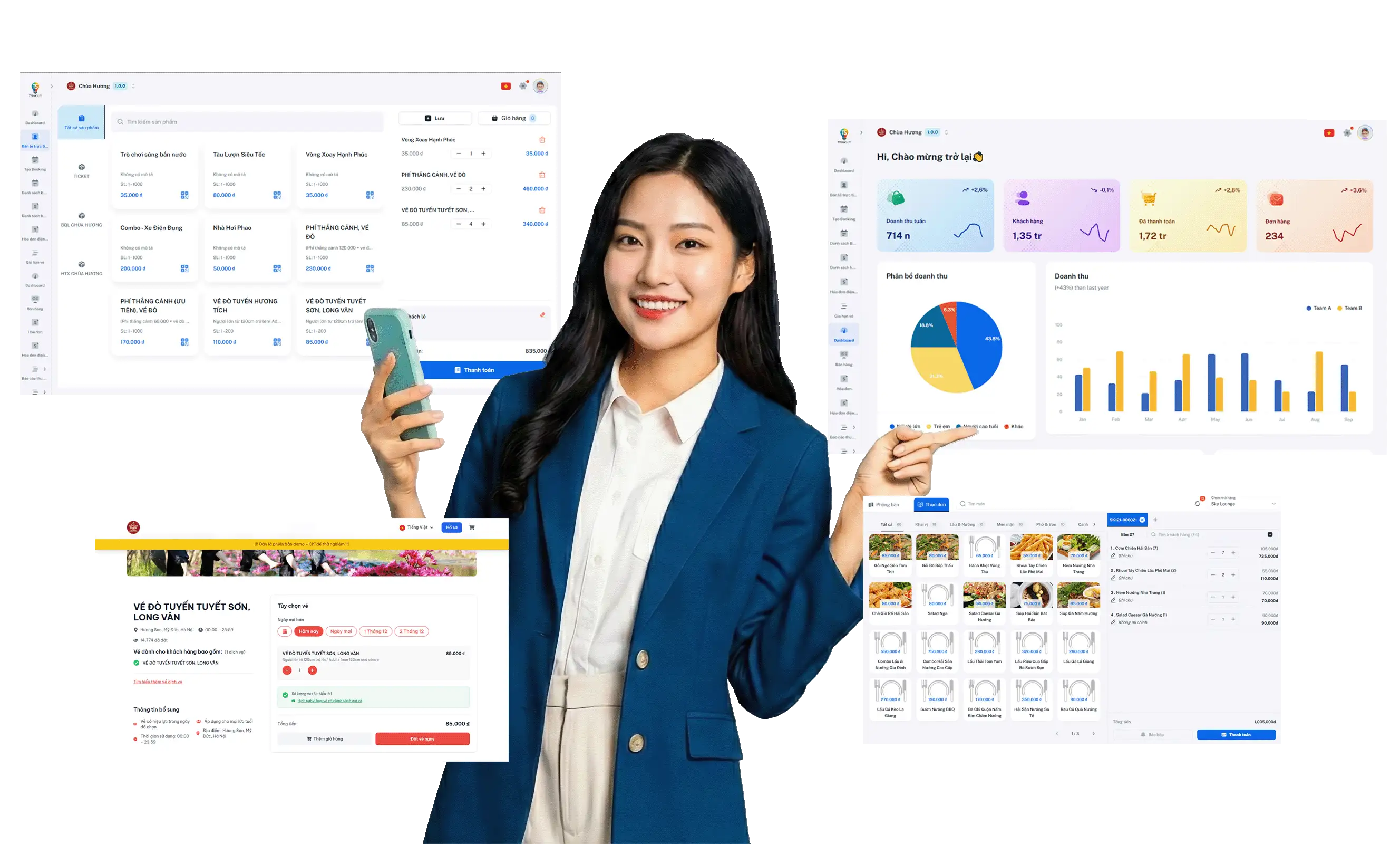 Cho phép chủ doanh nghiệp tự do thiết lập các gói combo dịch vụ, vé tham quan kết hợp ăn uống để tối ưu doanh thu và trải nghiệm.